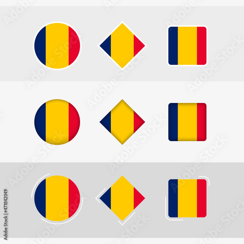 Fototapeta premium Chad flag icons set, vector flag of Chad.