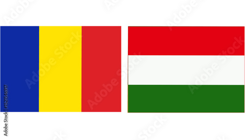 © Usama, Fototapeta premium Chad Official flag with Hungry national flag, both countries flags in Horizontal shape and isolated on white background Rectangular colorful design Flag with together.