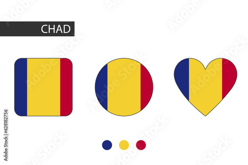 Fototapeta premium Chad 3 shapes (square, circle, heart) with city flag. Isolated on white background.