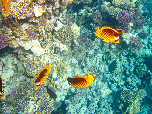 © glebantiy, Fototapeta premium Chaetodon fasciatus or Diagonal butterflyfish in the expanses of the coral reef of the Red Sea