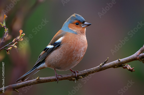 © Husnain, Fototapeta premium Chaffinch bird sitting on a branch, natural background, uccelli, pettirosso,
