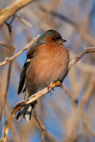 © Janine, Fototapeta premium Chaffinch on a Snowy Branch