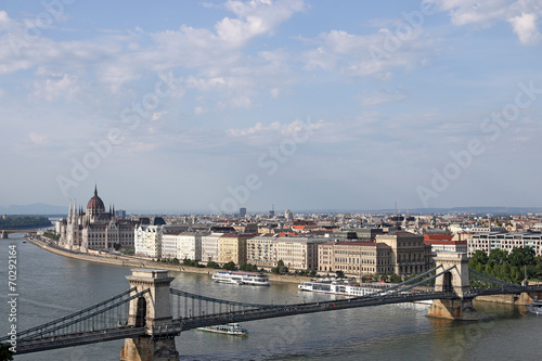 Naklejka premium Chain bridge and Hungarian Parliament Budapest