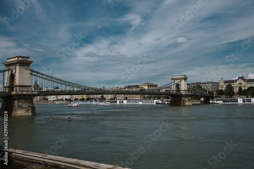 © irontrybex, Obraz premium Chain bridge on danube river in budapest