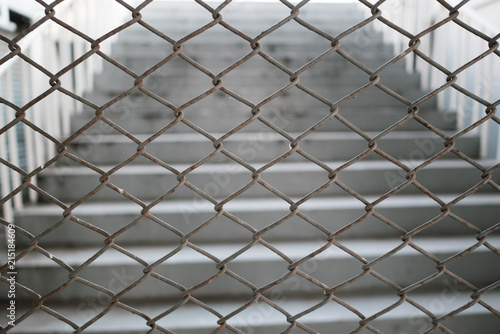 © wachiwit, Fototapeta premium Chain link fence in front of stairway