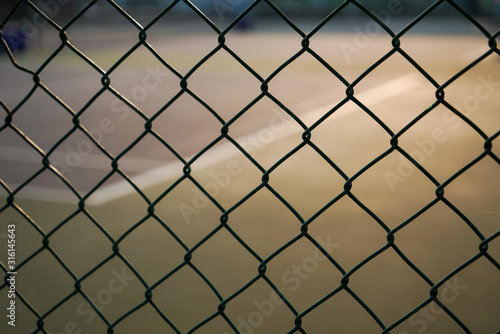 © ATIPPORN, Fototapeta premium chain link fence on a white background