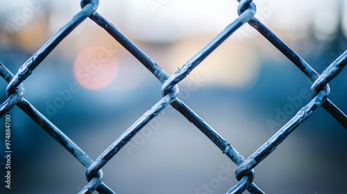 Fototapeta premium chain-link fence stands out against a softly blurred background, symbolizing...