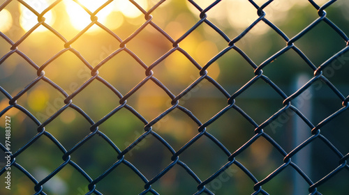 Fototapeta premium chain-link fence stands out against a softly blurred background, symbolizing...