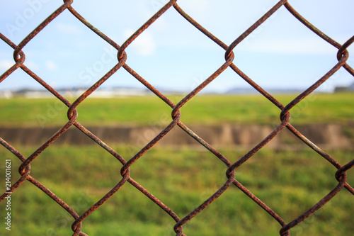 © Stock.Foto.Touch, Fototapeta premium Chain link fence with grass field Phuket International Airport