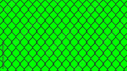 Fototapeta premium Chain-link fencing with the diamond pattern and green screen as background