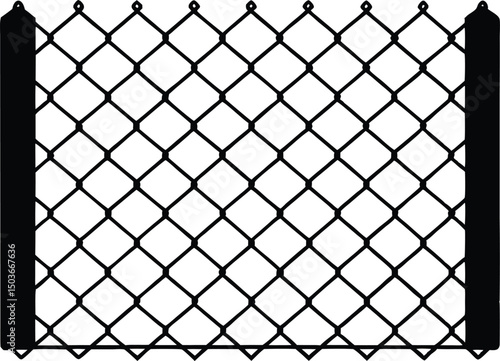 Fototapeta premium Chain link net silhouette, Decorative fence wire mesh isolated silhouette. vector illustration