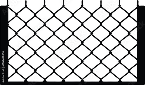 Fototapeta premium Chain link net silhouette, Decorative fence wire mesh isolated silhouette. vector illustration