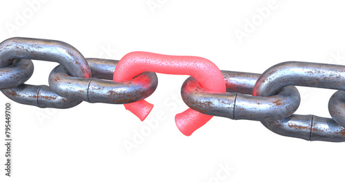 Obraz premium Chain link with a broken weak link, glowing red hot chain
