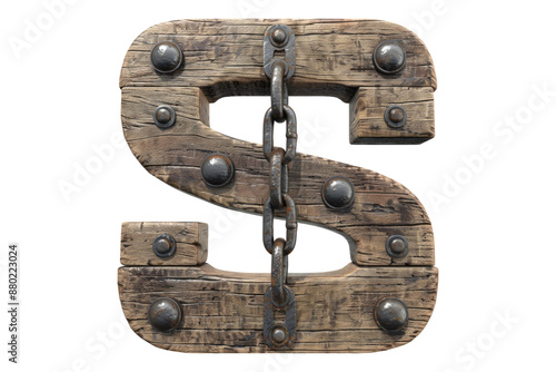 Fototapeta premium Chain S wooden sign isolated on transparent background