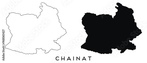 © Alex, Obraz premium Chainat map outline and black silhouette vector
