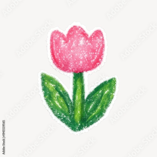 Fototapeta premium Chalk-drawn pink tulip illustration.