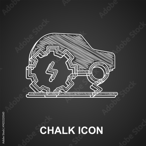 Fototapeta premium Chalk Electric car service icon isolated on black background. Renewable eco technologies. Vector