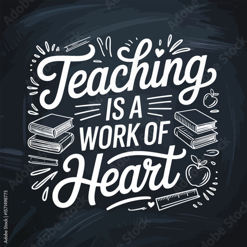 Obraz premium Chalkboard Teaching Quote with Books Apples and Ruler