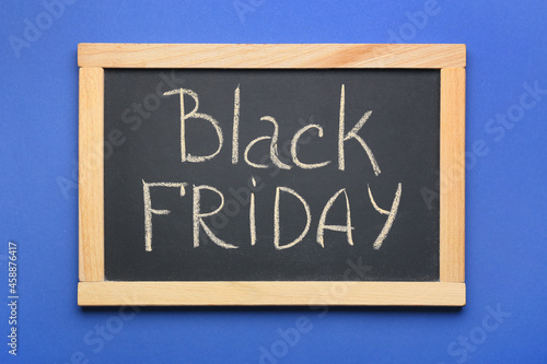Fototapeta premium Chalkboard with text BLACK FRIDAY on color background