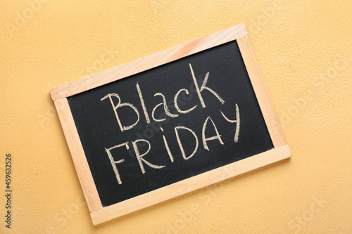 Fototapeta premium Chalkboard with text BLACK FRIDAY on color background