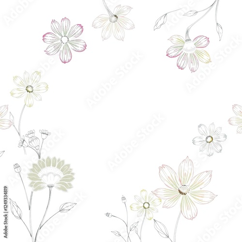 Fototapeta premium Chalky Floral Sketches on Textured Canvas