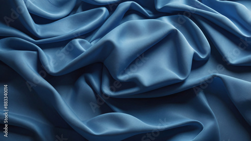 © a.h.27088077, Obraz premium Chambray blue abstract background. Silk satin. Curtain, drapery. Shiny fabric. Wavy soft pleats.