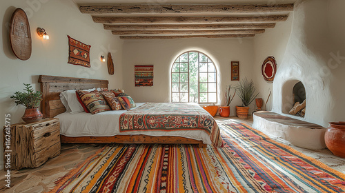 © Raphael, Obraz premium Chambre chaleureuse et élégante dans une maison de style Santa Fe