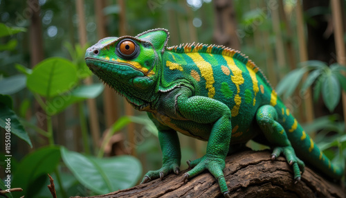 Fototapeta premium Chameleon adapting to its surroundings, symbolizing change and flexibility,...
