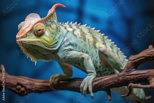 © Alfazet Chronicles, Obraz premium chameleon changing color to match icy surroundings