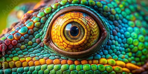 © Four888, Obraz premium Chameleon Eye Macro: Vibrant Scales & Stunning Clarity in Nature