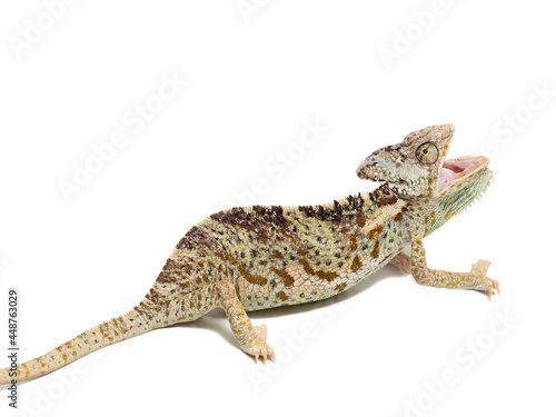 © wip-studio, Naklejka premium chameleon isolated on white background Chamaeleo calyptratus