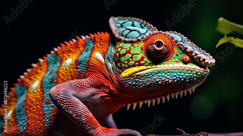 Fototapeta premium Chameleon near up. Multicolor Excellent Chameleon closeup reptile with...