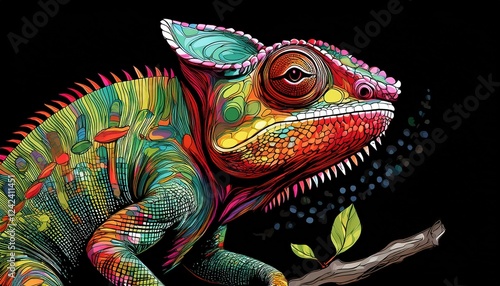 Obraz premium Chameleon on a black background