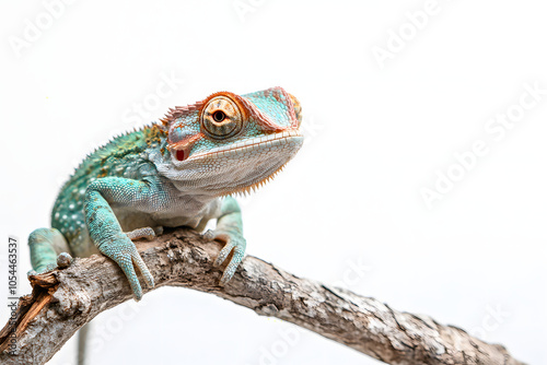 Fototapeta premium chameleon on a branch over white background