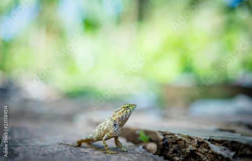 © domonite, Obraz premium chameleon on the old timber
