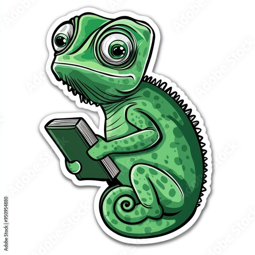 © Tung's companion, Obraz premium Chameleon Reading a Book