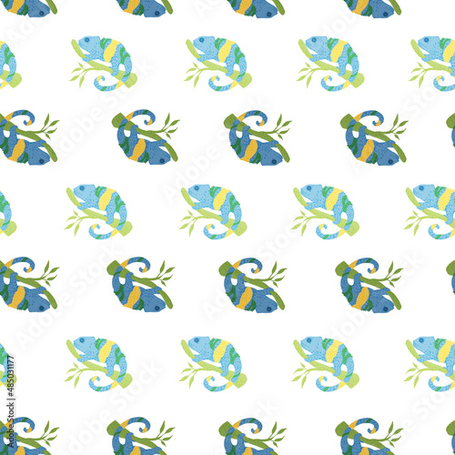 Fototapeta premium Chameleon seamless pattern. Background of tropical lizard.