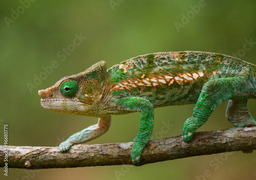 © gudkovandrey, Obraz premium Chameleon sitting on a branch. Madagascar. An excellent illustration. Close-up.