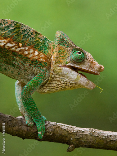 © gudkovandrey, Obraz premium Chameleon sitting on a branch. Madagascar. An excellent illustration. Close-up.