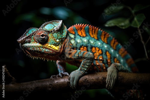 Obraz premium Chameleon standing on a branch. Generative AI