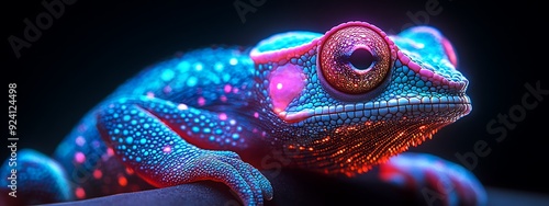 © Five Million Stock, Obraz premium Chameleon with colorful neon retro wave background. synth wave frog. Illustrations design