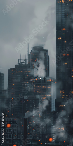 © CarlosEduardo, Obraz premium Chaminé emitindo poluição com prédios industriais cinzentos ao fundo
