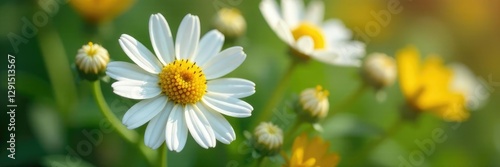 © smart, Naklejka premium Chamomile daisy in full bloom with its stamens, floral, flowers