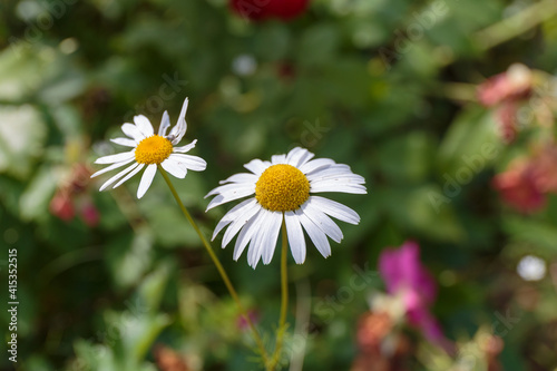 Fototapeta premium Chamomile flower close up. Blooming spring flowers.
