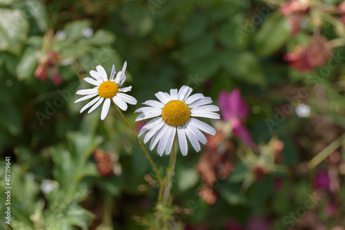 Fototapeta premium Chamomile flower close up. Blooming spring flowers.