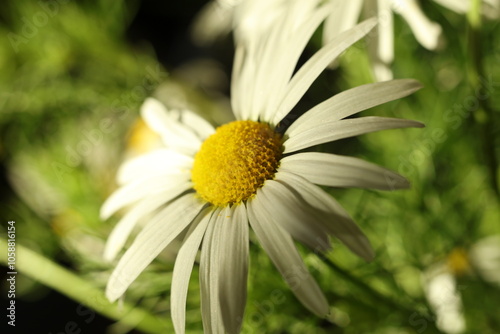 © gabriela, Obraz premium chamomile flower on a green background. selective focus