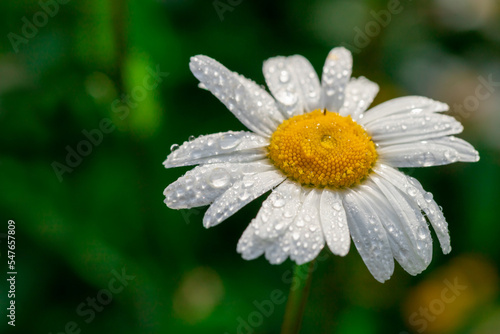 © lms_lms, Fototapeta premium Chamomile with early dew in meadow.