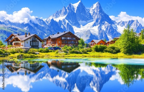 Fototapeta premium Chamonix and Mont Blanc, Chamonix, France.Chamonix and the Mont Blanc peaks,...