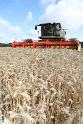 © goodluz, Fototapeta premium champ de blé avec moissonneuse