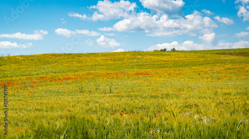 Fototapeta premium Champ de blé et de fleurs sauvages au printemps